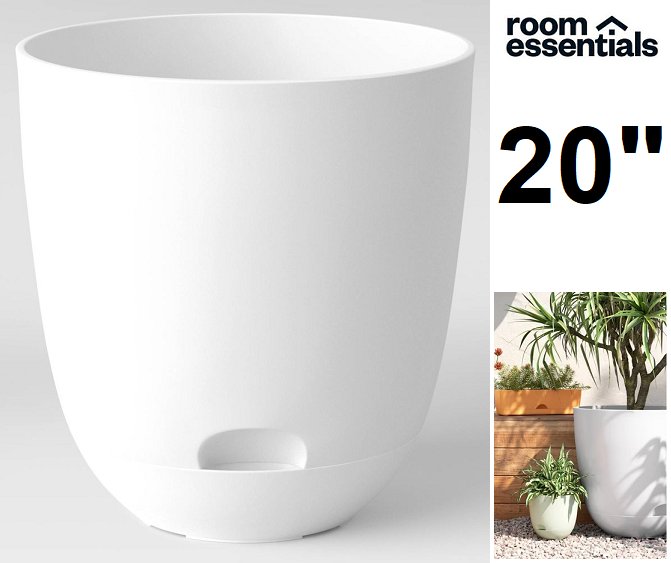 room essentials self-watering plastic indoor outdoor planter pot - 20" - white