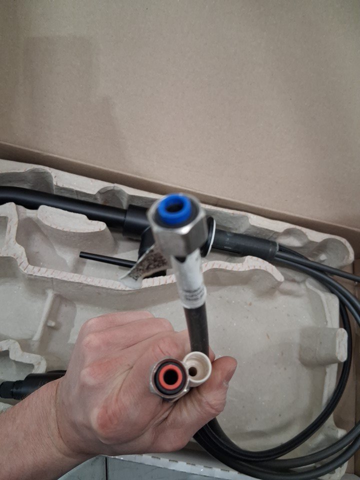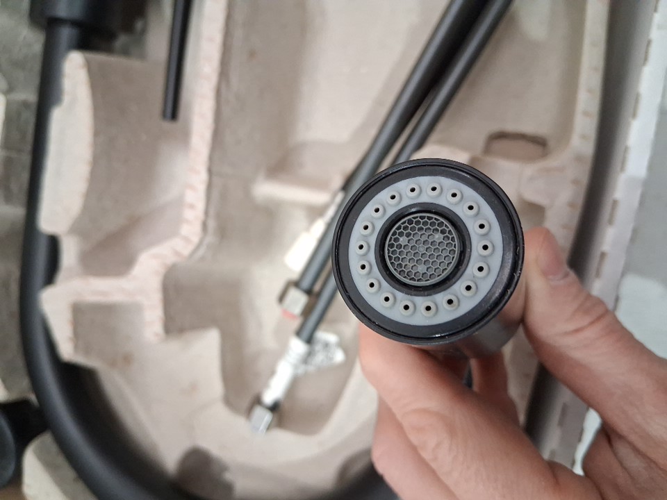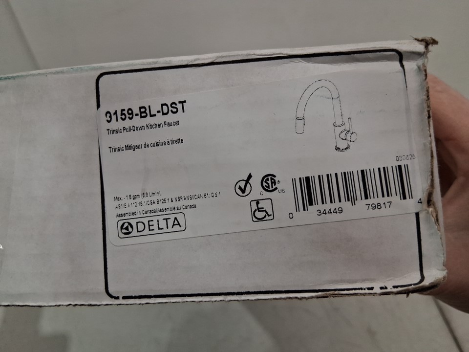 There are some scratches on the faucet indicating previous handling. It does not appear to have been previously installed/used, but it is missing the mounting nut assembly piece (see photos)