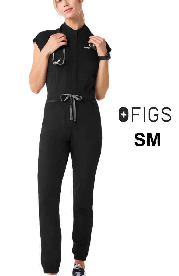 WOMEN'S FIGS Rafaela Cargo Scrub Jumpsuit - SMALL REGUALR - BLACK