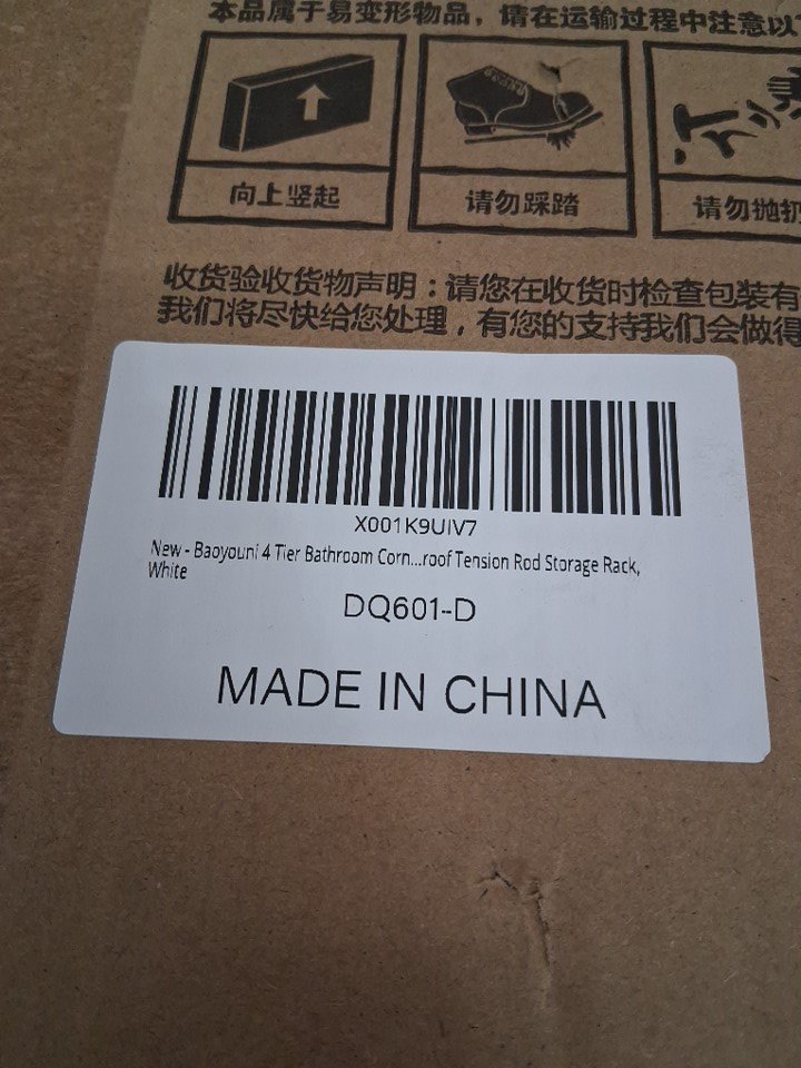 BAOYOUNI 4-TIER BATHROOM CORNER SHOWER CADDY POLE - RUST PROOF TENSION ROD STORAGE RACK - ADJUSTABLE 6FT-10FT - IVORY WHITE (MODEL: 601D)