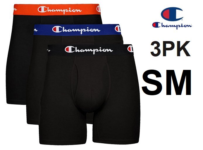 3PK MENS CHAMPION EVERDAY COTTON STRETCH BOXER BRIEFS - small - BLACK