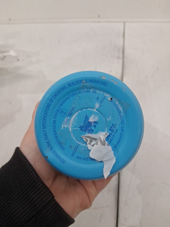 THERE IS SOME SCUFF MARKS AS WELL AS A SMALL DENT ON THE BOTTOM OF THE CUP. SEE PHOTOS