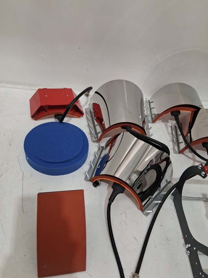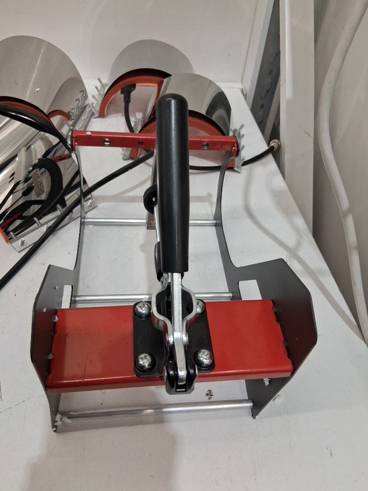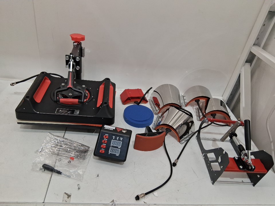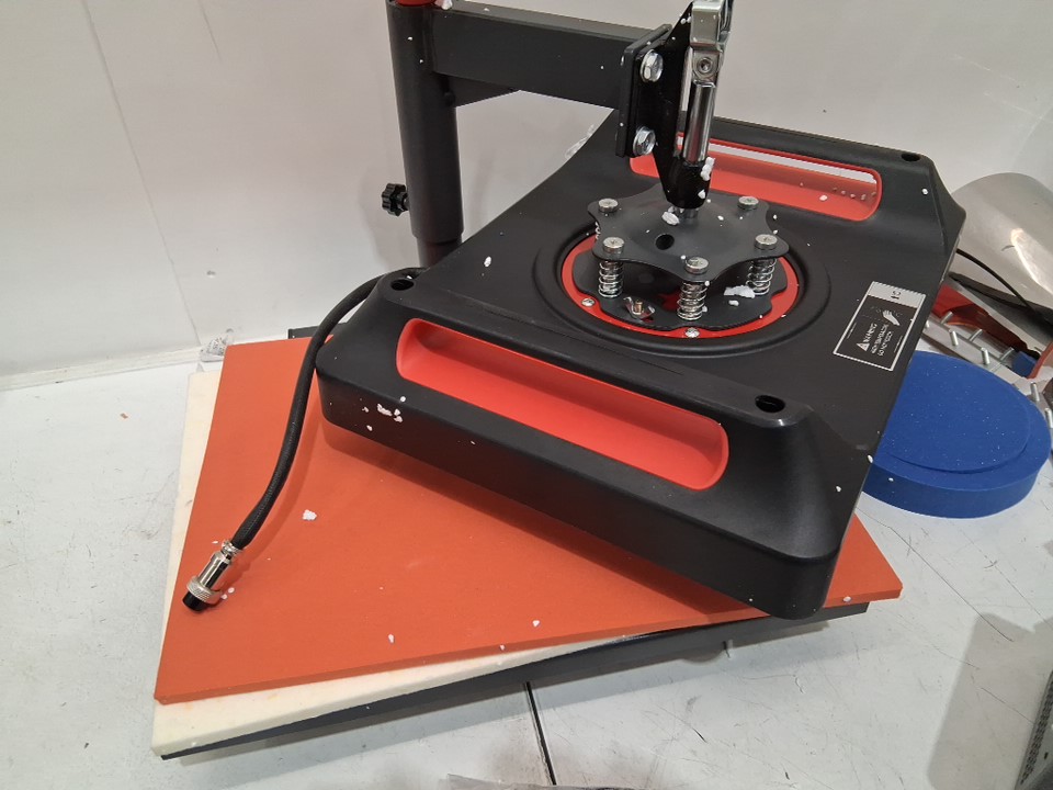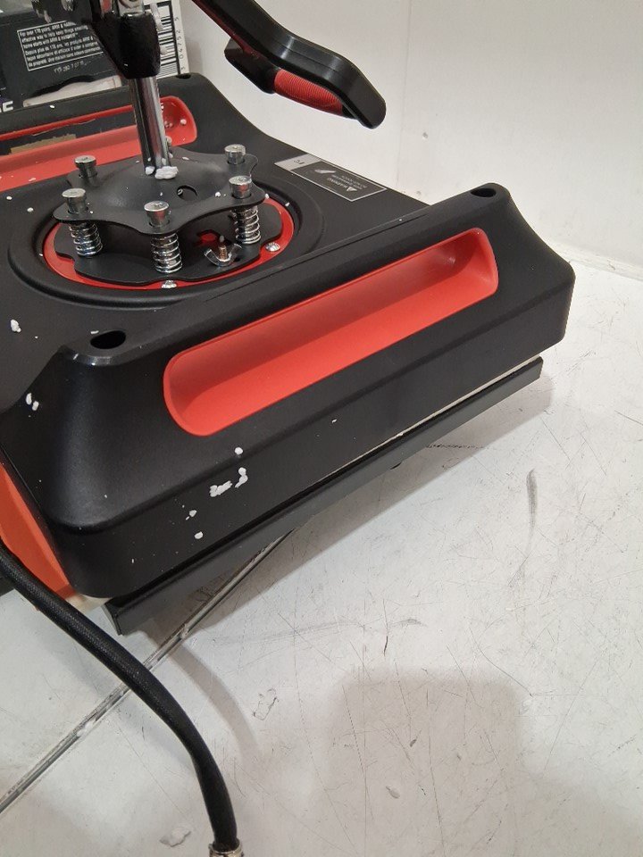 Please note item is missing the power cord, so we are unable to test it. Item also has minor scuffing/scratches and marks. Also, the knob on the press machine is broken but still functional, see photos for reference.
