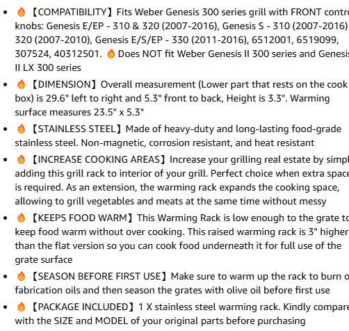 QuliMetal Stainless Steel Warming Rack - select models of weber grills - silver (MODEL:65054_ca)