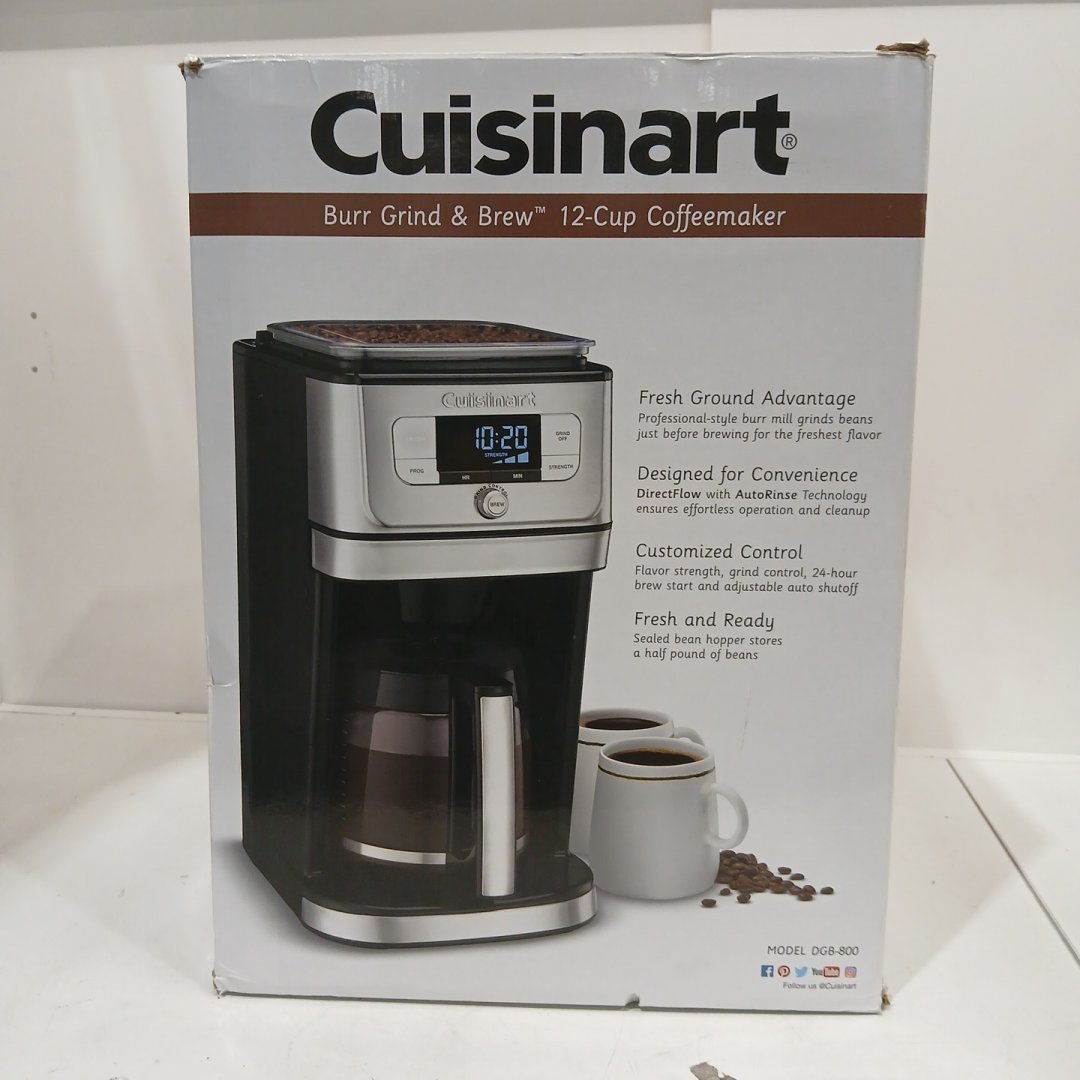 CUISINART BURR GRIND & BREW AUTOMATIC PROGRAMMABLE COFFEE MAKER - 12-CUP GLASS CARAFE - STAINLESS STEEL/BLACK (MODEL: DGB-800C)