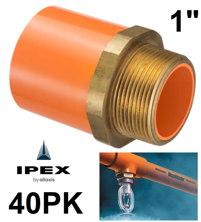 40PK Ipex Male Adapter with Brass Insert for Blazemaster Sprinkler System - 1" - Orange (Model: 048136 / 80158)
