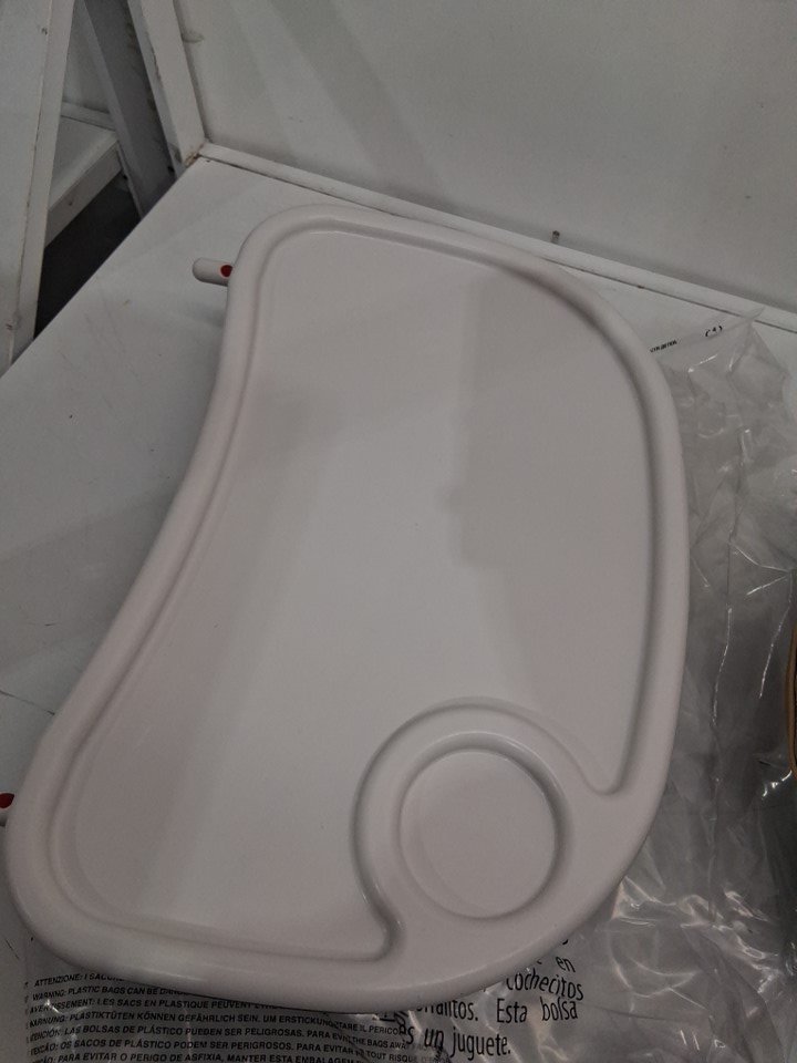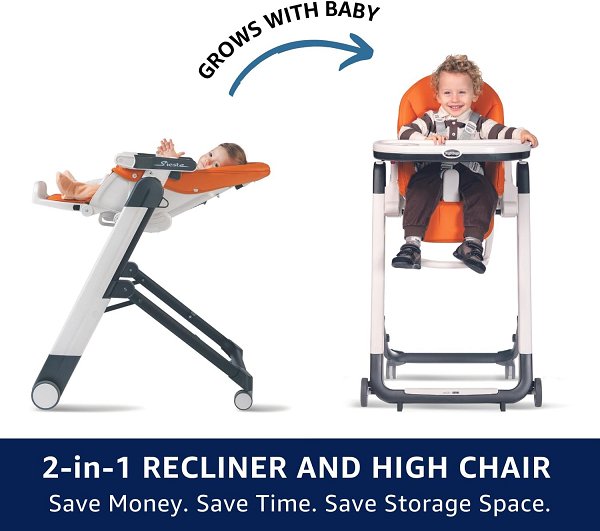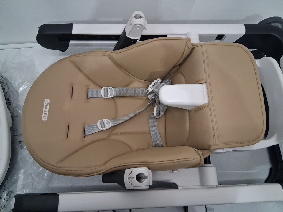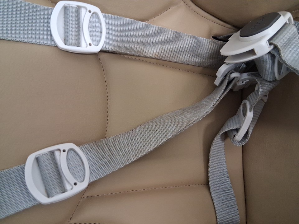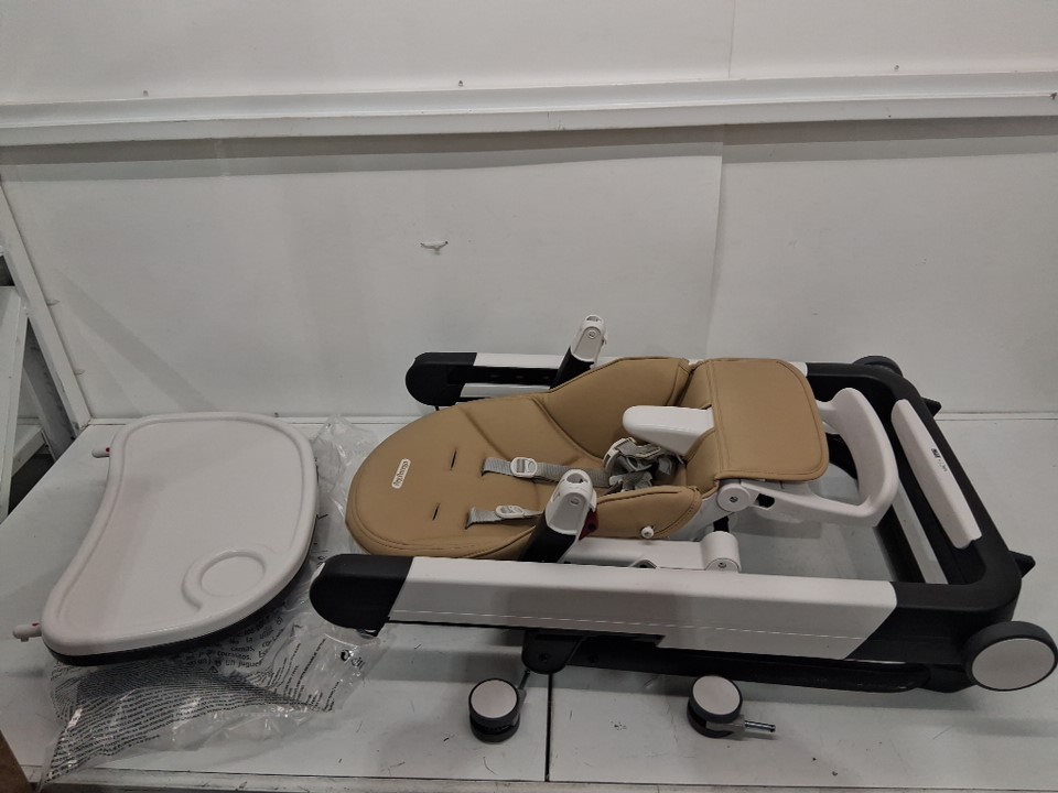 High chair has visible stains on frame and on straps of chair