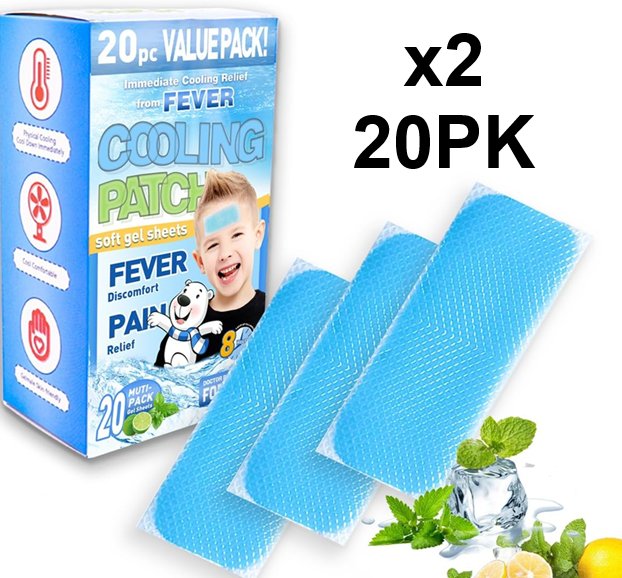 2 (20PK) Cooling Gel Patches Fast-Acting Cooling Pads for Adults and Kids to Relieve Headaches, Migraines, Sunburn and Heat Stroke - mint/lime