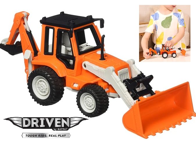driven by battat - micro backhoe loader toy with sounds and moveable parts- ages 3+ - orange/black/grey- (model:wh1185)