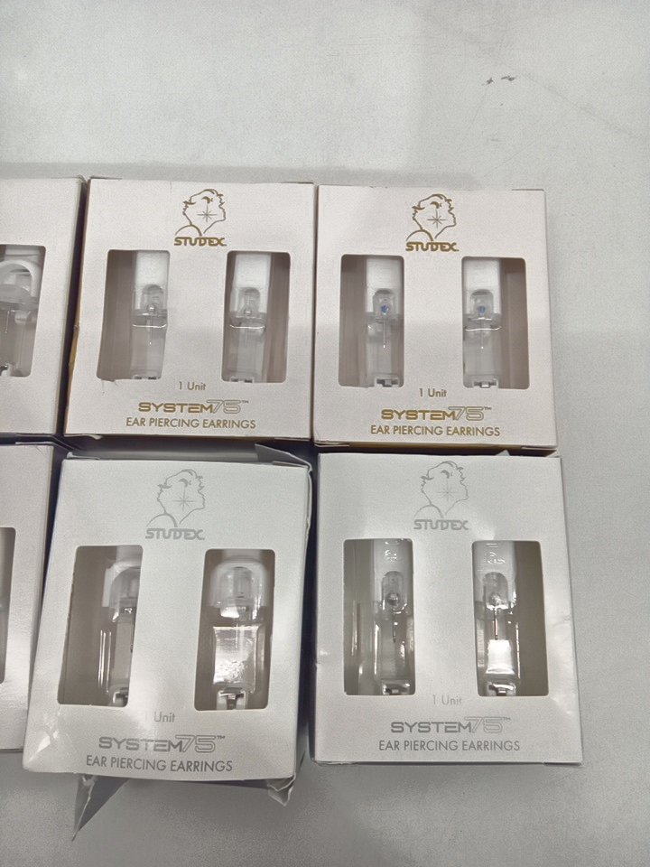 6 ASSORTED EAR PIERCING KITS - VARIOUS METALS/ COLOURS/ SIZES