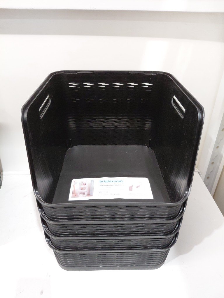 4PK BRIGHTROOM easy access wavy weave decorative storage bin - 11.3" x 16.3" x 12.6" - black