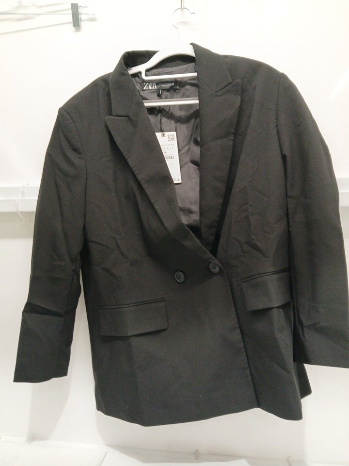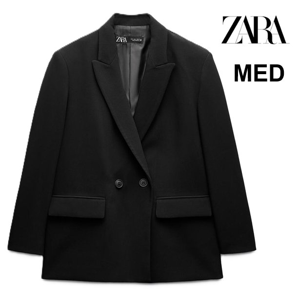 WOMEN'S ZARA OVERSIZE DOUBLE-BREASTED BLAZER - MEDIUM - BLACK