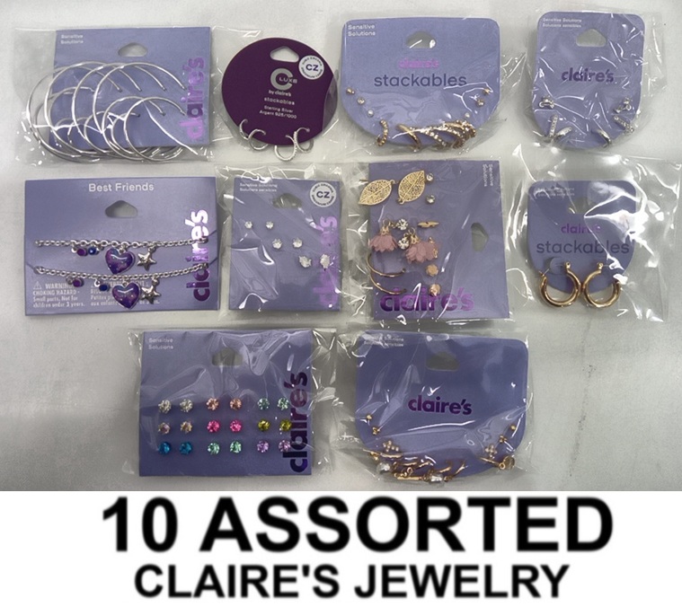 10 ASSORTED CLAIRE'S JEWELRY - assorted earrings , bracelets