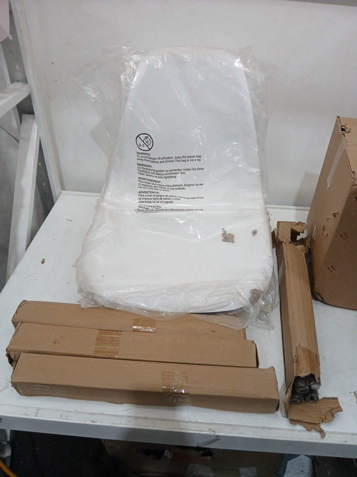 Please note one of the chairs is very damaged, see photos. We have included it as all the hardware is present of it, in-case the customer wants to attempt to mend it. See photos.