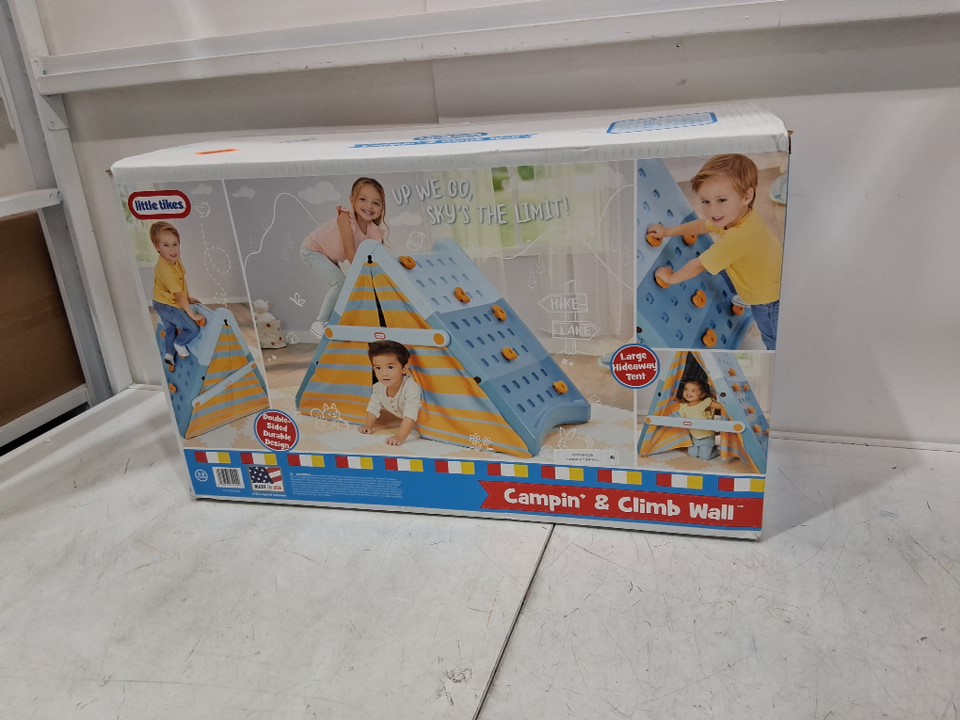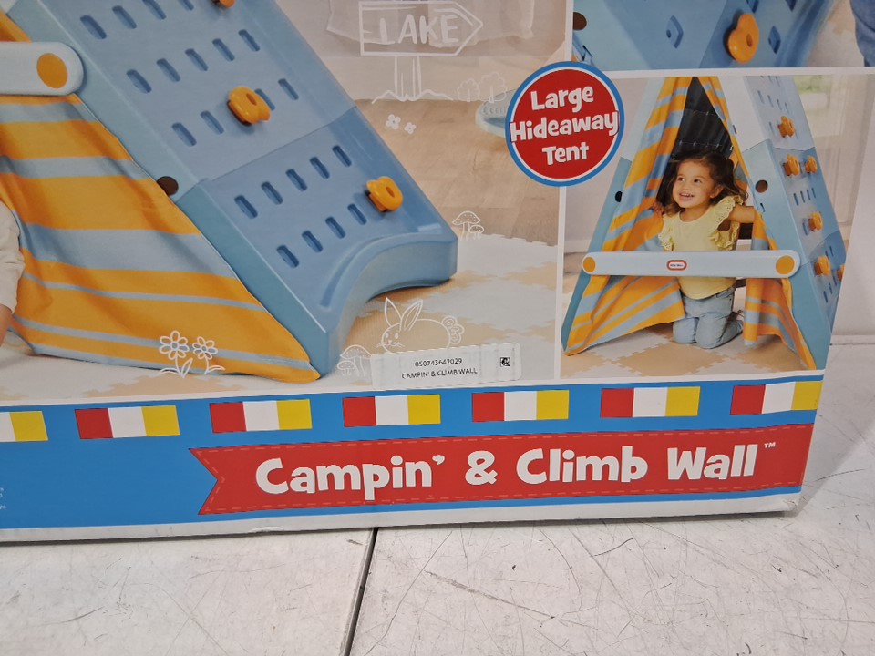 KIDS LITTLE TIKES CAMPIN' & CLIMB WALL ACTIVE PLAY CLIMBING WALL AND TENT - AGES 3+ - BLUE/ORANGE
