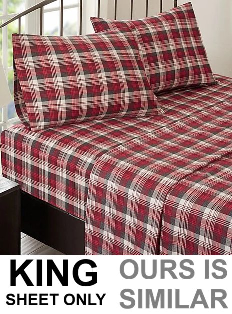 Think Light Cotton 400 Thread Count Bed Sheet - King Size - Red Plaid (Model: F303156)