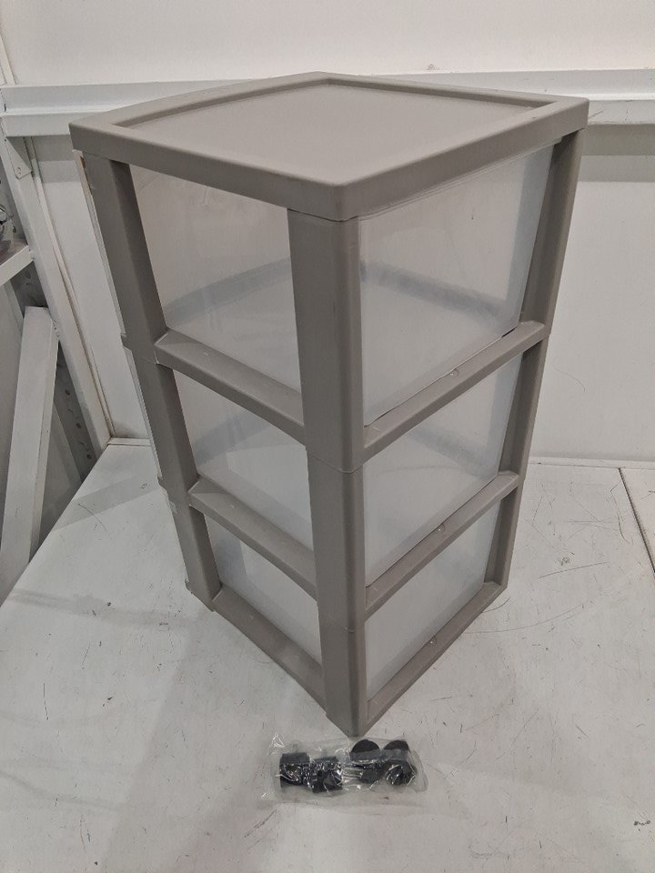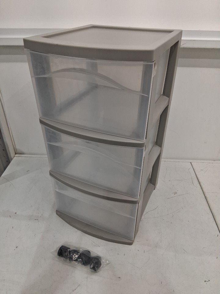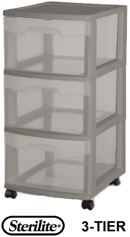 sterilite multi-purpose 3-teir plastic bin drawer storage tower with castor wheels - 14.5" x 12.75" x 24"- clear/grey (model: 4630)