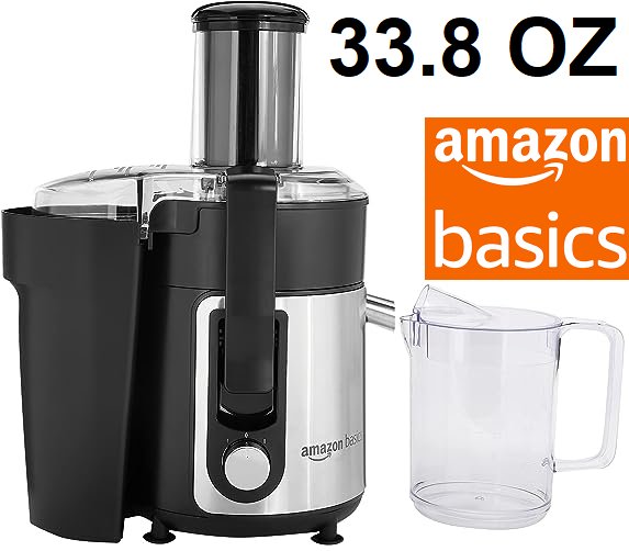 amazon basics wide mouth 2 speed centrifugal juicer - 33.8oz - stainless steel/black - (model: ‎JE3700C-UL)