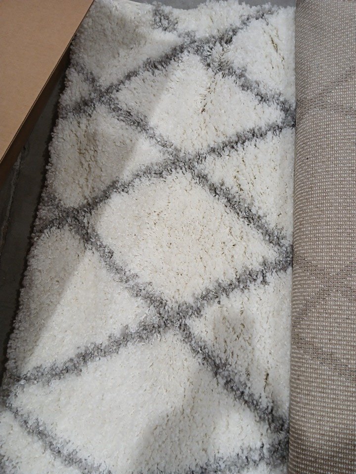 *GENERIC CONDITION STATEMENT* PLEASE BE AWARE THAT THE STOCK IMAGE USED MAY NOT 100% RESEMBLE THE COLOUR OF THE ITEM BEING SOLD. The images used and sizes given are taken from the online retailer. Rug has been inspected by our staff and laid out on our warehouse floor for full inspection and photos. Due to this nature of handling there might be light dirt or dust on the item from handling or storage in our facility at time of pick up.