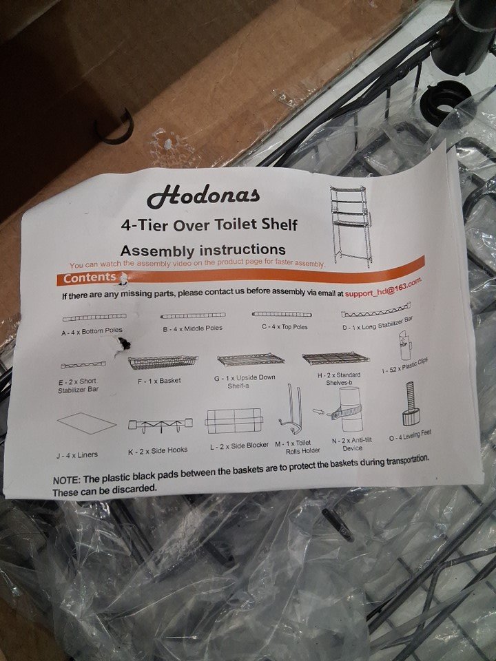 hodonas 4-tier Shelf Over the Toilet Rack Storage Organizer Stand FOR BATHROOM - 600lbs cap - 27" x 10" x 67" - grey