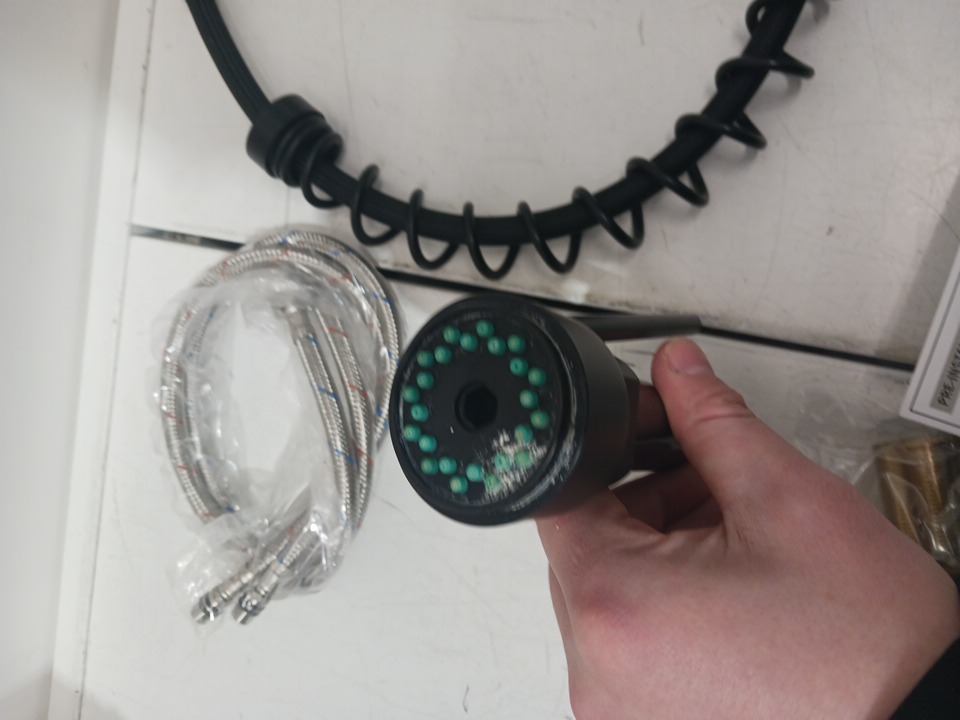 There is water residue present and a stale water odor. this item may require additional hardware. please view the photo's attached.