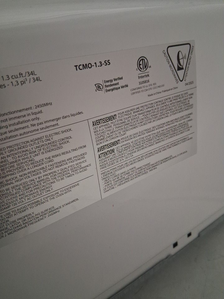 Total Chef Compact Countertop Microwave Oven - 1100W - 1.3 Cu.ft - stainless steel (model: tcmo-1.3-ss)