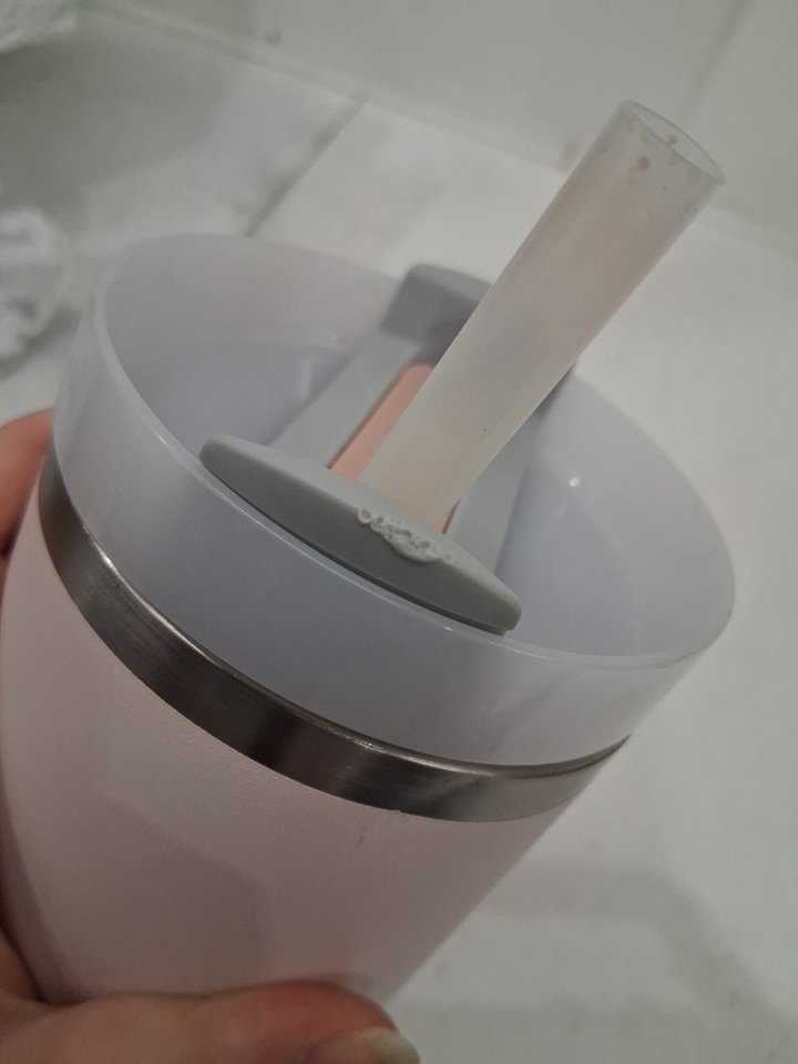 ITEM HAS SIGNS OF LIGHT USE, SMALL SCUFF MARK WHERE STRAW SITS. WILL NEED TO BE CLEANED. SEE PHOTOS