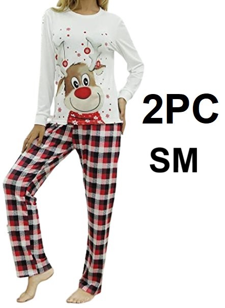 2PC WOMEN'S CHRISTMAS PAJAMAS - SMALL - REINDEER/PLAID