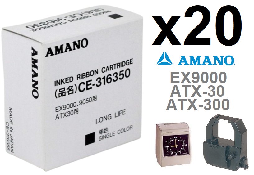 20 AMANO INK RIBBON CARTRIDGE FOR EX9000, ATX-30 AND ATX-300 TIME CLOCK MODELS - LONG LASTING SINGLE COLOR (MODEL: CE-316350)