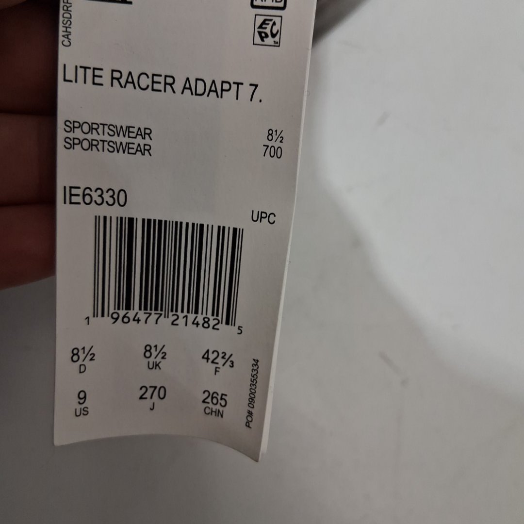 men's adidas Lite Racer Adapt 7.0 slip on shoe - size 9 - White/Black (style: ie6330)