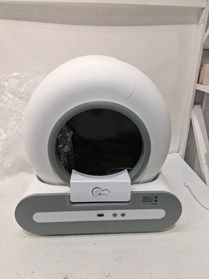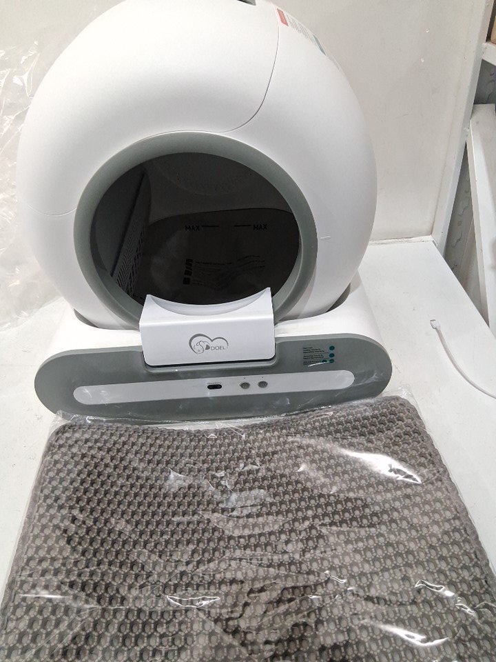 DOEL smart Self Cleaning Cat Litter Box with APP Control and detachable easy clean drum and a roll of bag refills - 65l drum - 9l waste bag - 20" x 19" x 19" - white (model: tpcbt-01)