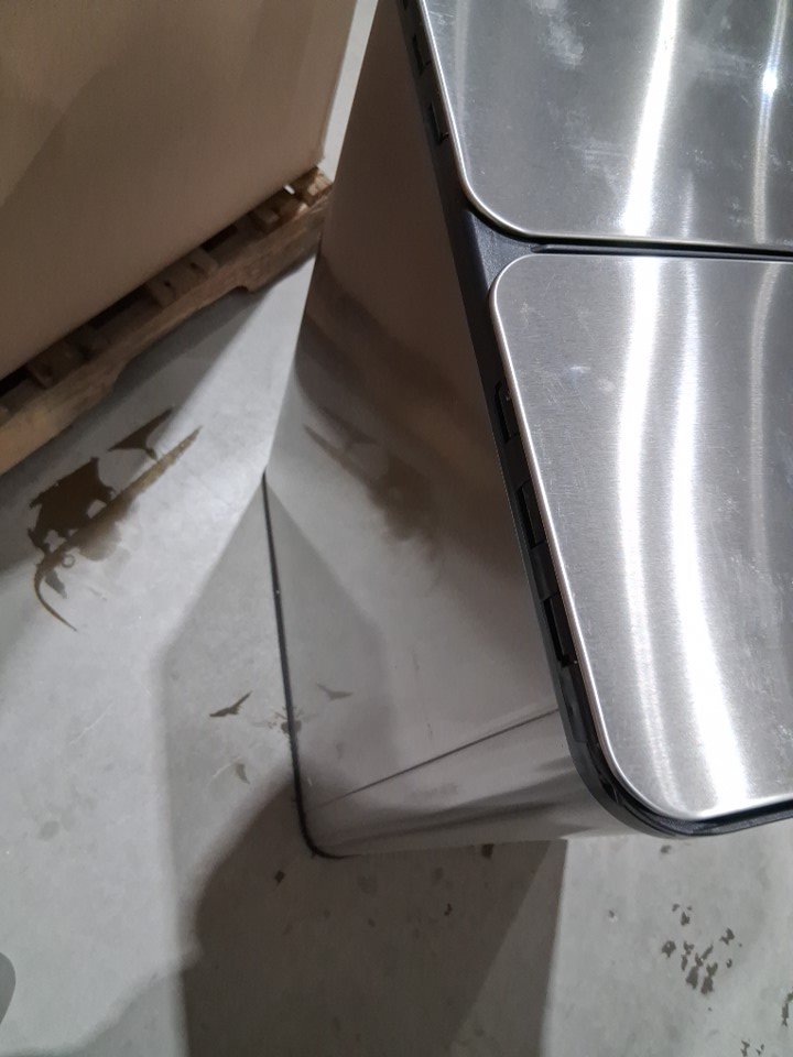 there is a very slight dent in the front left corner of the can likely caused during shipping. this can is also very stick and will need a cleaning. exploding frozen beverages during shipping is the cause, not previous use.