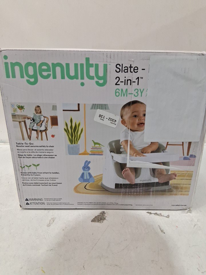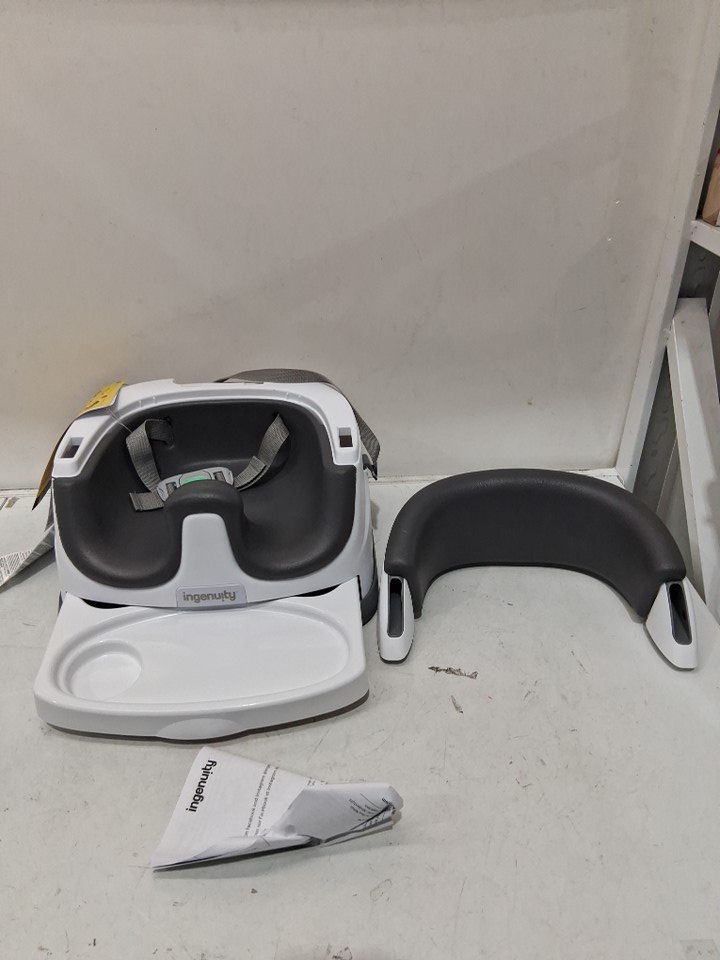 INGENUITY BABY BASE 2-IN-1 BOOSTER SEAT WITH FOOD & DRINK TRAY - 50LBS CAPACITY - WHITE/SLATE GREY (MODEL: 11576)