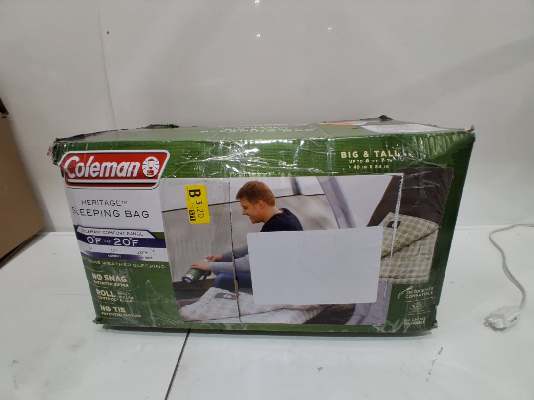 Coleman Heritage Big & Tall Sleeping Bag WITH NO SNAG ZIPPER - 84" X 40" - BROWN PLAID (MODEL: ‎2000008710)