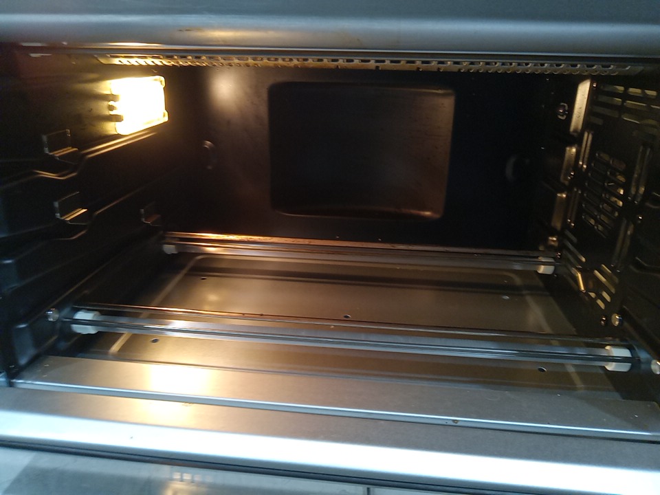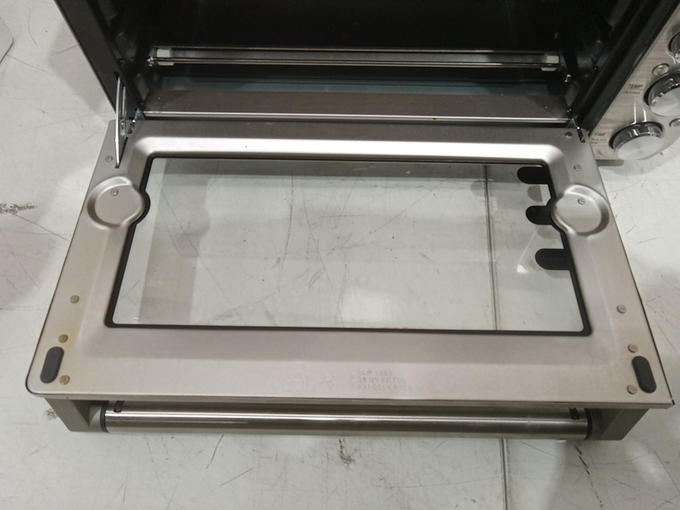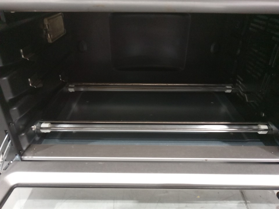 There are minor food stains inside the oven and there are scratch marks around the product. Recommended to be cleaned before use. Tested for power and heat only. (Please see photos)