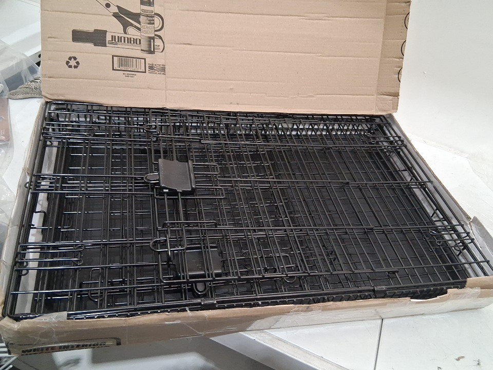 amazon basics single door foldable Metal Wire Dog Crate with Tray - 30" x 19" x 21" - black (model:9001N-30A)
