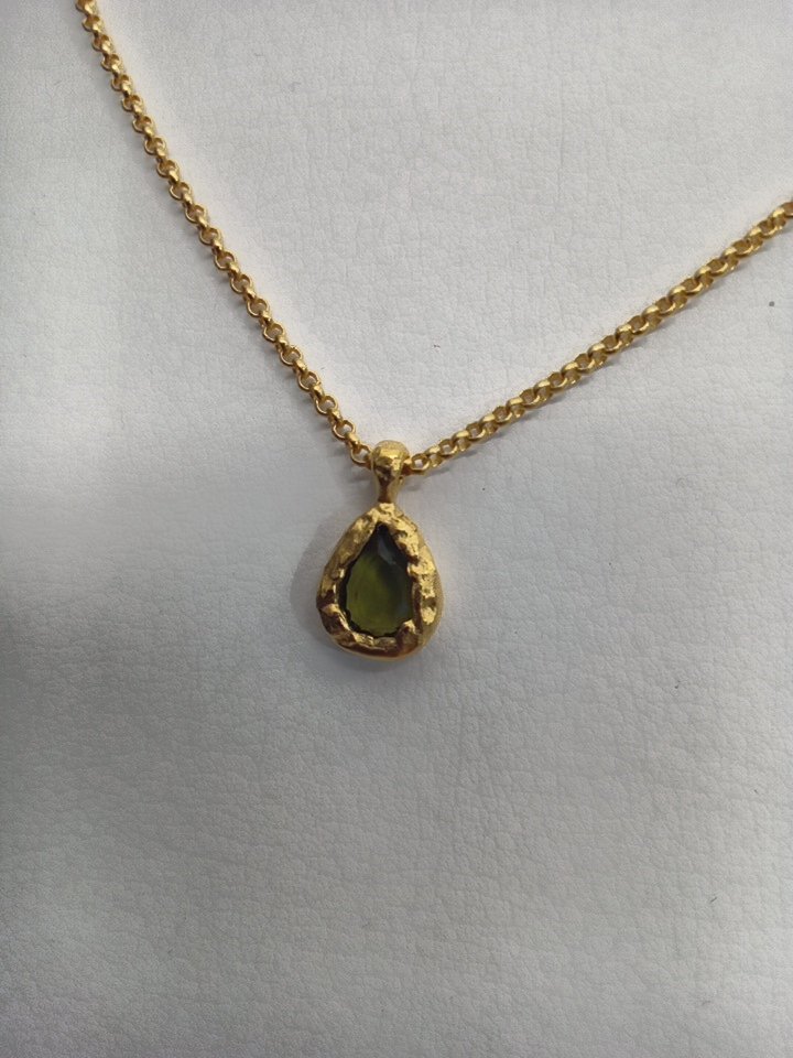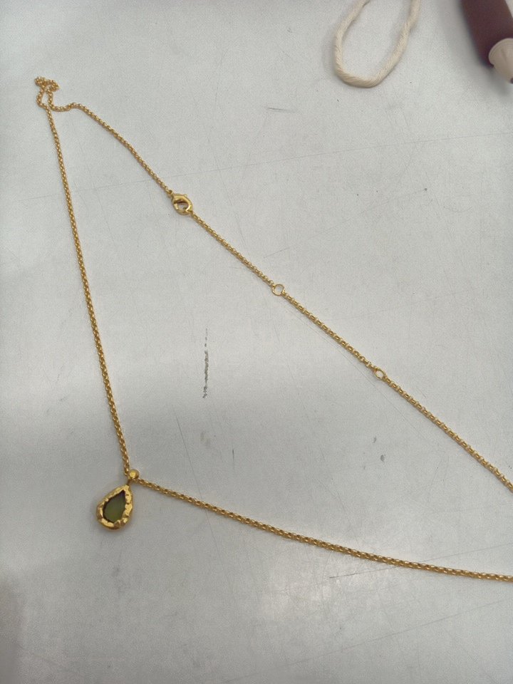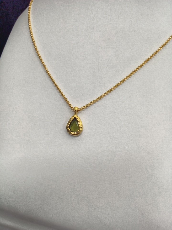 womens agapee lysia dark green necklace - gold plated -dark green glass stone - 10mm