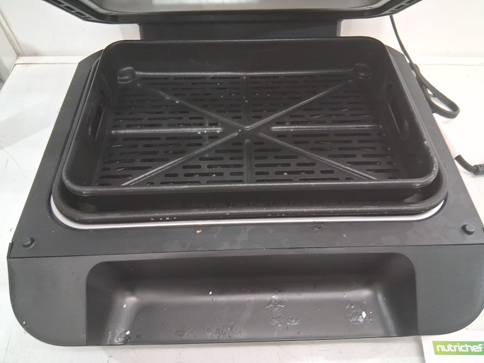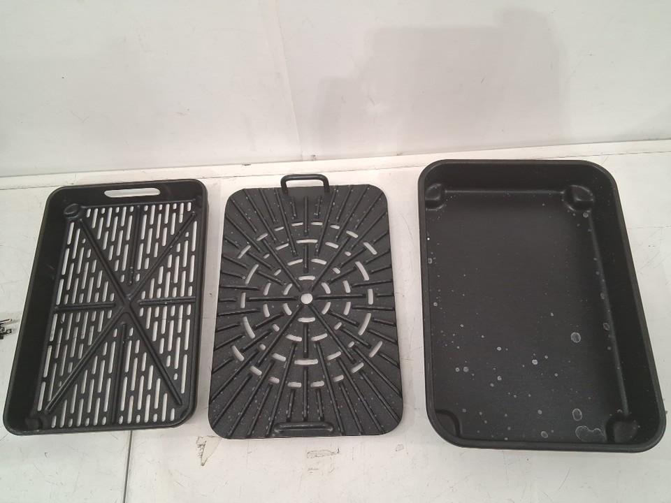 Grease residue on pans and inside grill indicates prior short-term use. (See photos)