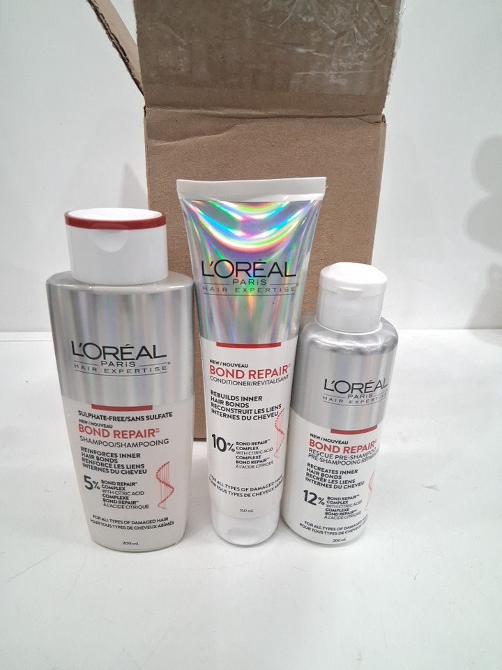 3pc l'oreal bond repair set - pre-shampoo, shampoo, and conditioner - 200ml, 200ml, 150ml
