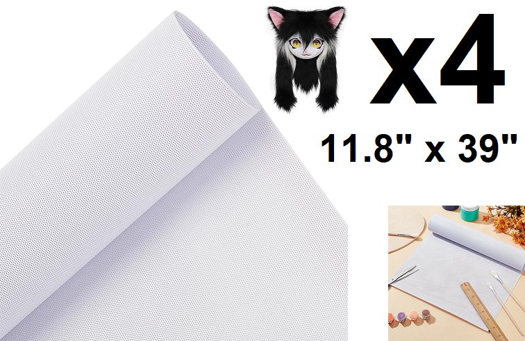 4 BENECREAT CUSTOM FURSUIT EYE MESH ROLLS - PRINTABLE WATERPROOF MESH FOR CRAFTS, COSPLAY, FURSUITS AND MORE - 11.8" X 39" EACH - WHITE