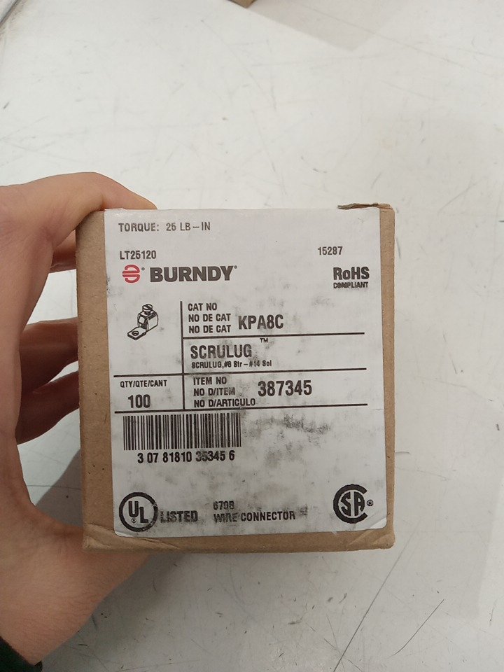 100PK Burndy KPA8C Scrulug For Copper Cable - (MODEL:387345)