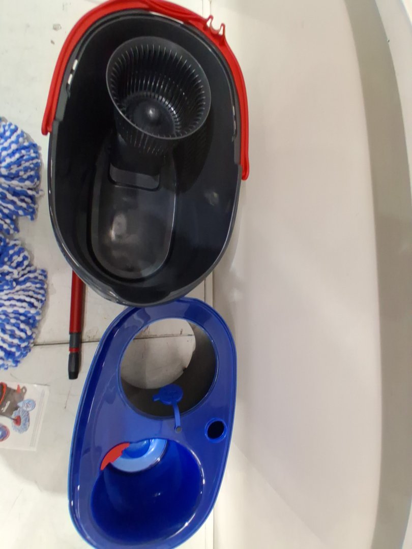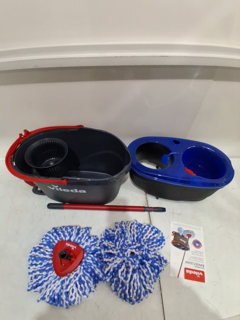 Vileda Easywring Rinse Clean 2 Tank Spin Mop and Bucket System - 22" to 36"/36"-48" handle - Blue/Red/Grey