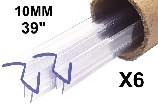 6 Shower Door Bottom frameless Seal PVC Strip M SHAPE - 10MM THICK - 39" - CLEAR