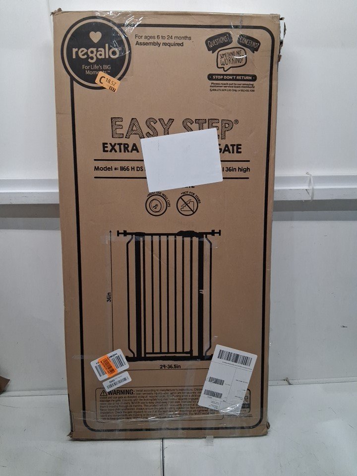 REGALO EASY STEP WALK-THRU METAL SAFETY GATE - 36" x 29" to 36.5" - WHITE (MODEL: 1166HDS)