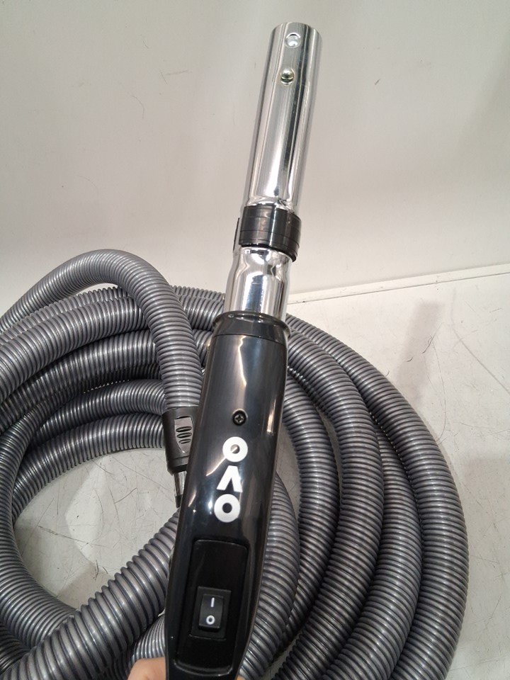 OVO CENTRAL VACUUM ATTACHMENT KIT WITH LOW-VOLTAGE HOSE ON/OFF SWITCH AT THE HANDLE - 35FT - black/grey