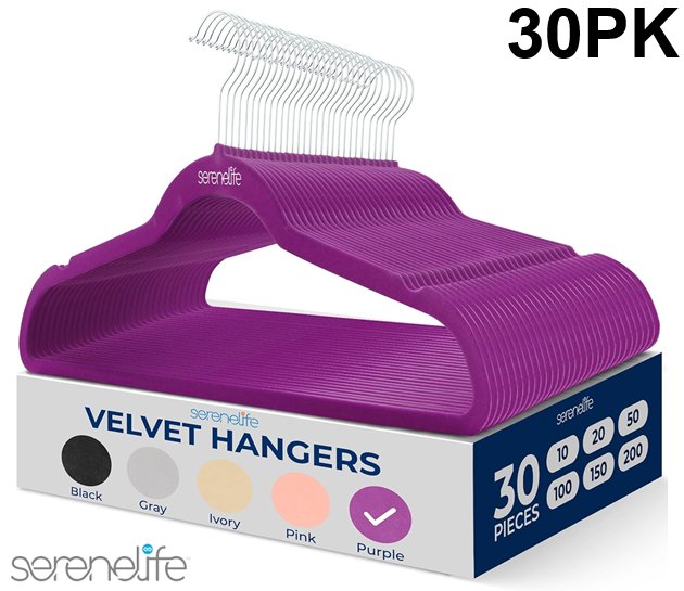 30PK SereneLife Premium Non-Slip Velvet Hangers with 360 Degree Swivel Metal Hook - PURPLE
