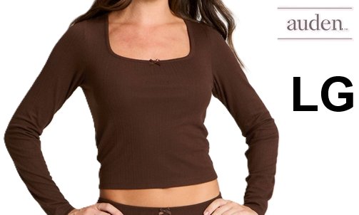 WOMENS Auden Variegated Ribbed Long Sleeve Pajama Top - LARGE - BROWN