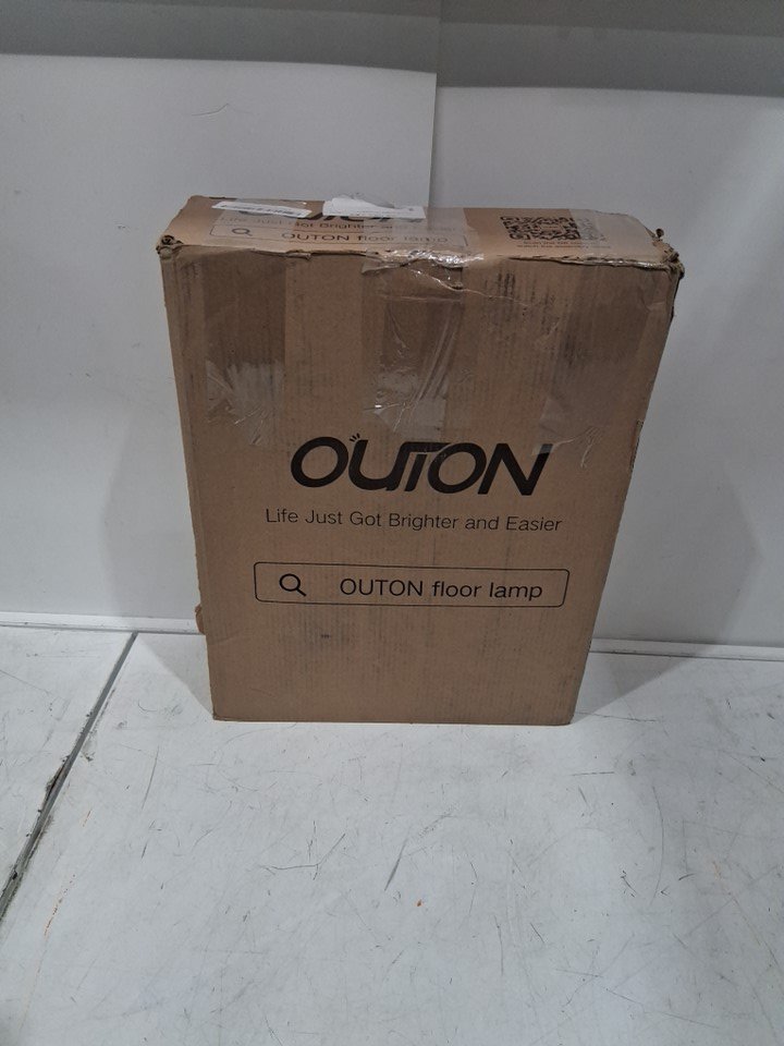 OUTON Adjustable Tall Standing Reading Lamp with Hanging White Linen Texture Shade for Living Room Floor Lamp - 63" - BLACK (MODEL: H-BZD01)