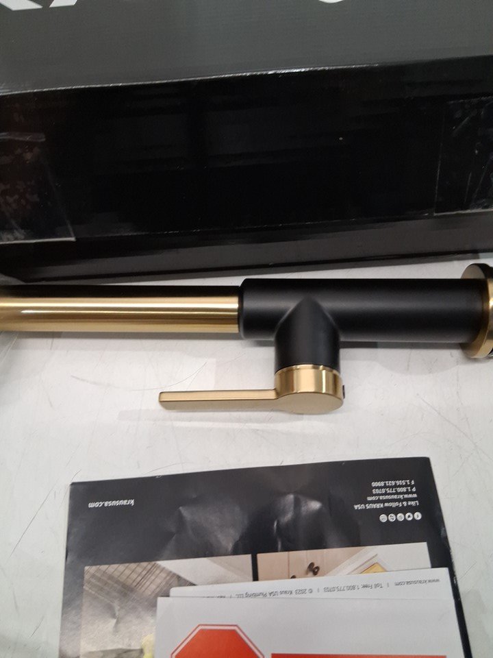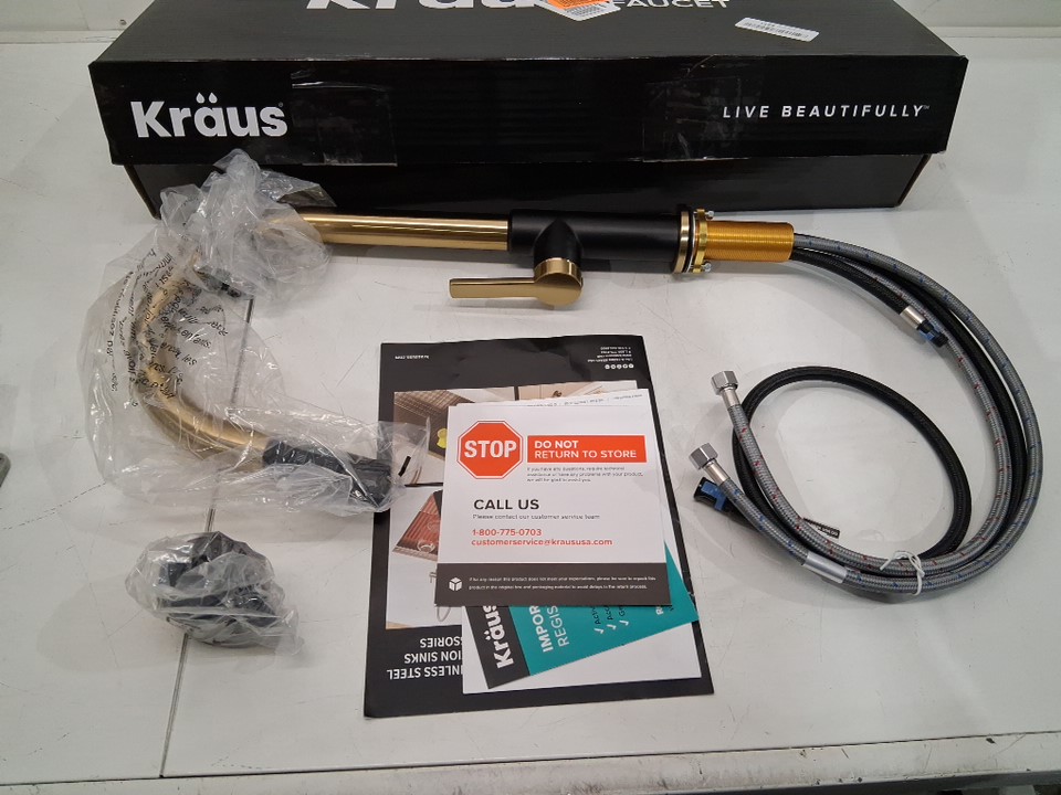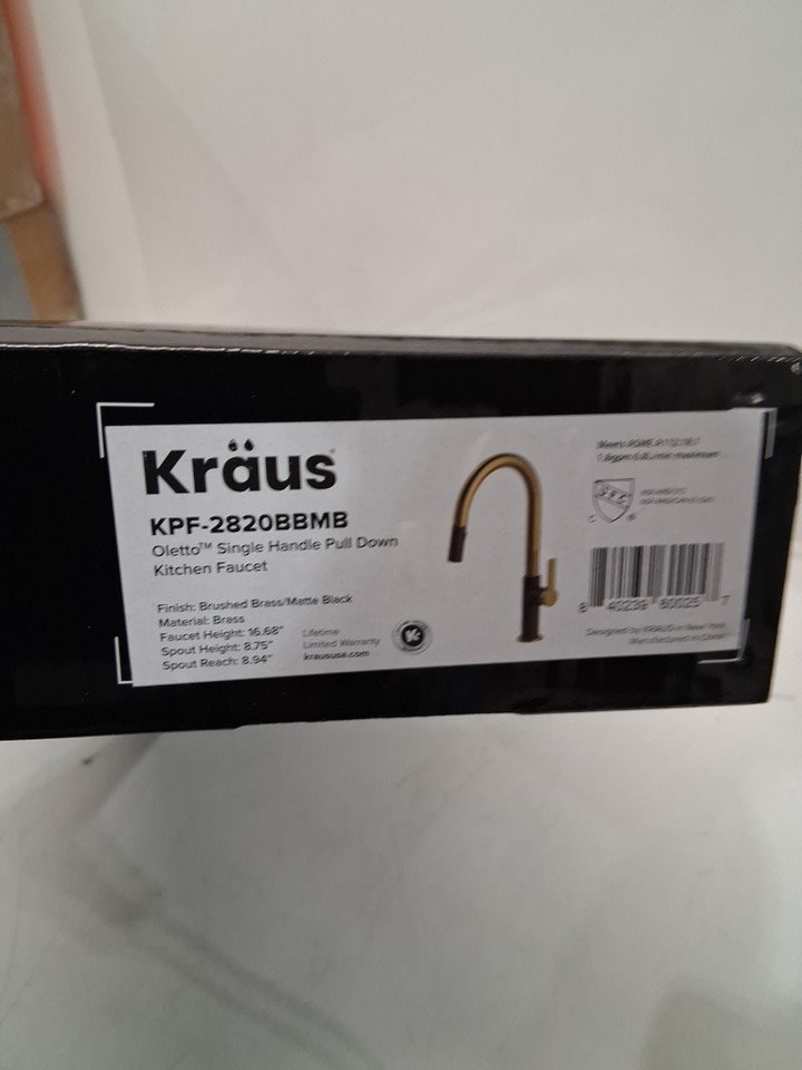 Kraus oletto ingle handle pull down kitchen faucet - 16.68" - brushed brass/matte black finish (model:KPF-2820BBMB)
