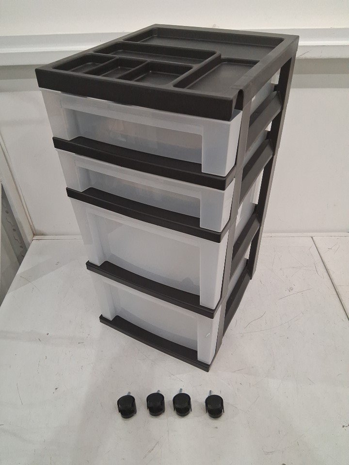 IRIS USA 4-DRAWER STORAGE ROLLING CART WITH ORGANIZER TOP - GREY (MODEL: MC-303)